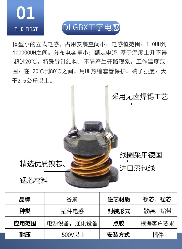 DLGBX工字電感:尺寸:可依客戶要求定制;感量:1uH-100mH;精度:J級(±10%)、K級(±10%)、M級(±20%);電流量:1mA-20A(可定制);特點:小體積,高儲能;適用于:電視、電源供應器、LED照明等。詳情咨詢:0512-65368862。工字電感,工字電感廠家,工字電感0406,工字電感0608,工字電感0810,工字電感0912,工字電感1010,工字電感1012,屏蔽工字電感,47uh工字電感,33uH工字電感,220uH工字電感,工字電感生產(chǎn)廠家,電感定制,屏蔽工字電感,杭州工字電感,南京工字電感