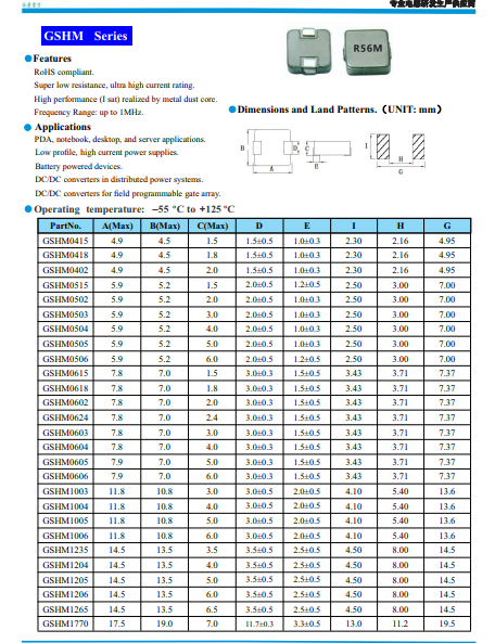 風(fēng)華一體成型電感有HA63、HA65、HA125三個(gè)系列,分別對應(yīng)谷景一體成型電感GSHM0603、GSHM0605、GSHM1205三個(gè)系列;除了這三個(gè)系列,谷景一體成型電感還有26款以上系列型號(hào),還可以定制感值。