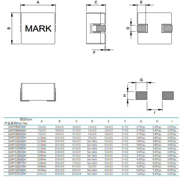 一:扁平線圈電感GAFF-H 產(chǎn)品特征1.符合環(huán)保要求2.扁平線繞線結(jié)構(gòu),超低內(nèi)阻3.超大電流承載能力,優(yōu)異的熱穩(wěn)定性4.精準(zhǔn)阻抗有效抑制電磁干擾二:扁平線圈電感產(chǎn)品應(yīng)用1. 高電流要求驅(qū)動電路濾波2.電源電路直流-直流轉(zhuǎn)換三:扁平線圈電感命名方式GAFF069030HMT1R0四:扁平線圈電感結(jié)構(gòu)及電氣原理五:扁平線圈電感封裝尺寸規(guī)格:六、詳細(xì)規(guī)格書下載如下: